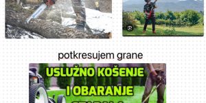 Secem i obaram stabla motornom testerom, potkresujem grane, cena po dogovoru, zavisi od tezine posla, secem drva za ogrev 700din po kubnom metru Uslužno kosim travu i korov motornim trimerom, Cena košenja je po dogovoru u zavisnosti od količine korova i veličine placa Kula i okolina Predrag 0604611100
