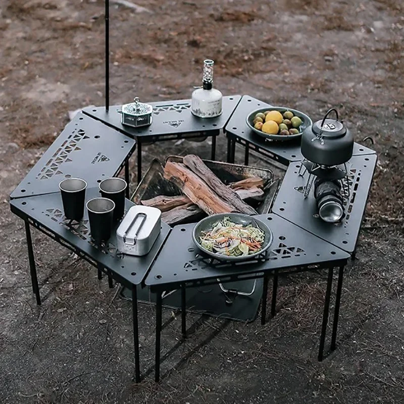 5. Savršeno za roštiljanje i piknike: Bilo da planirate roštilj ili piknik u parku, šesterokutni sklopivi stol je idealan pratilac. Njegova prostrana površina pruža dovoljno prostora za hranu, piće i druge potrepštine, osiguravajući udobno rukovanje na otvorenom.